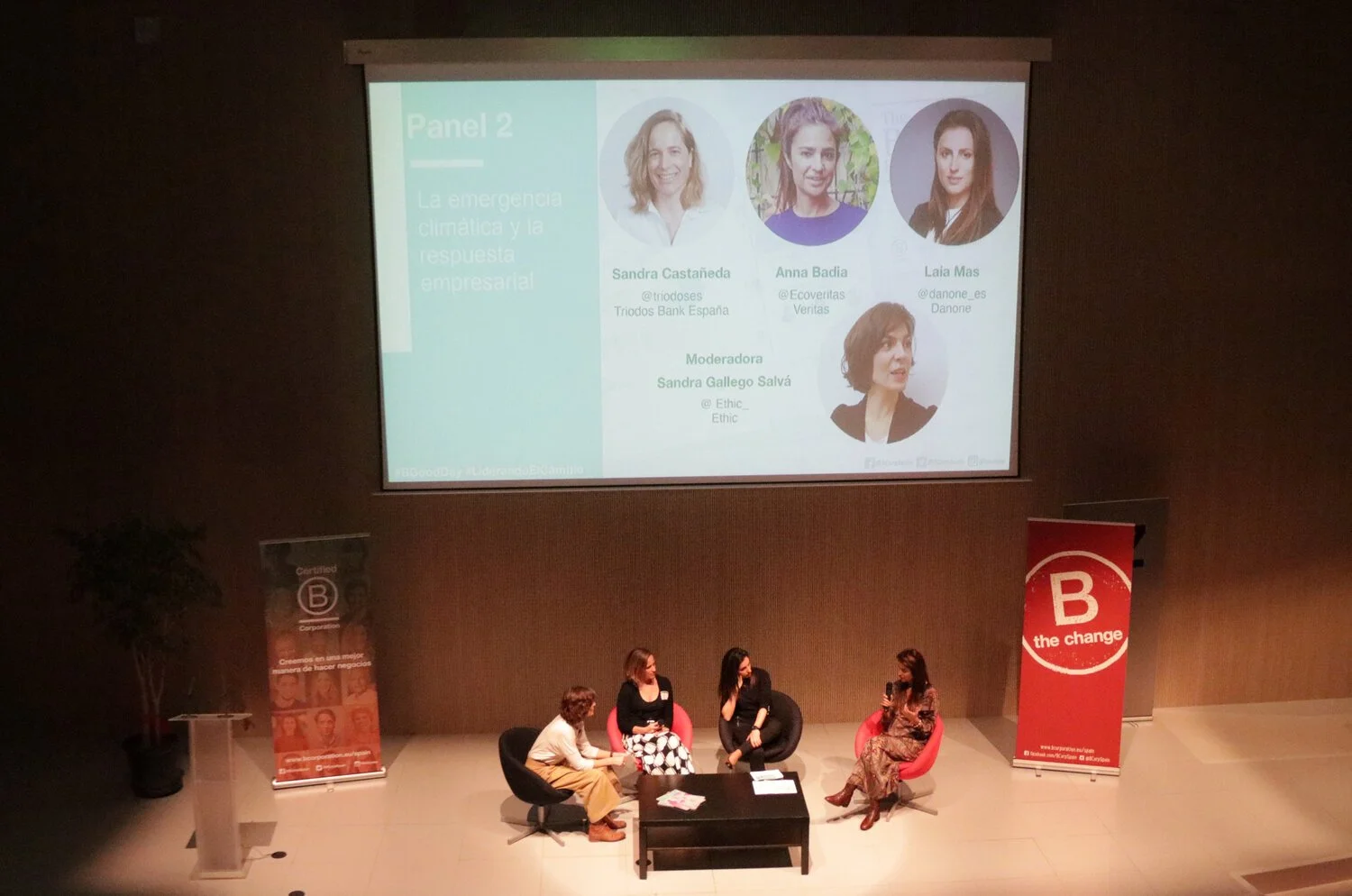 En el segundo panel sobre la emergencia climática y la respuesta empresarial, moderado por Sandra Gallego Salvá de la Revista Ethic, participaron Sandra Castañeda de Triodos Bank, Laia Mas de Danone y Anna Badia de Veritas. Los temas principales fueron las acciones que se están realizando para medir y poder disminuir la huella de carbono, la ganadería sostenible, la agricultura regenerativa y la economía circular, tema del que Sandra Gallego - Salvá comentó que “el súper reto del siglo XXI sería pasar de una economía lineal a una circular porque ahora menos de la mitad de los residuos se consiguen reciclar”.