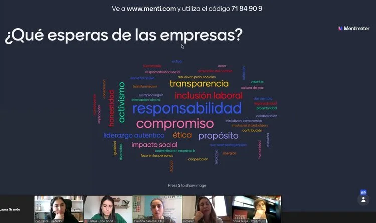 Las personas asistentes al workshop también participaron activamente y compartieron sus expectativas hacia las empresas. Responsabilidad y compromiso fueron las palabras más frecuentes a la hora de expresar qué necesitan del ecosistema empresarial.